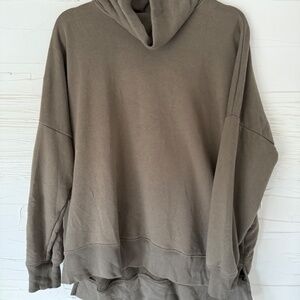 The coziest oversized funnel-neck sweatshirt in a rich greenish taupe shade. Super soft, relaxed, and perfect for lounging or styling with leggings.
