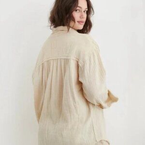 Aerie Gauzy Oversized Cover Up Button Up Shirt In Oatmeal. Perfect for layering.