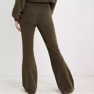 Aerie Groove-On Velour Flare Pants | Olive Green | Size Large