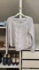 Grey knit sweater with rounded hem and knitted front detail. Scoop neck. On the shorter side. Great condition.