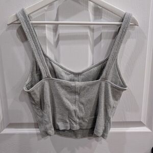 Light gray cropped ribbed tank with a soft texture. Perfect for layering.