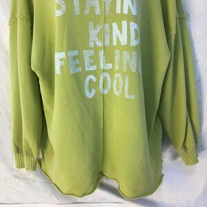 Aerie Lime Green Distressed Pullover Staying Kind Feeling Cool Sz XS Sweatshirt