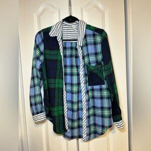 Aerie - Lined Mixed Casual Comfy Long Sleeve Plaid Button Down Shirt in Size M