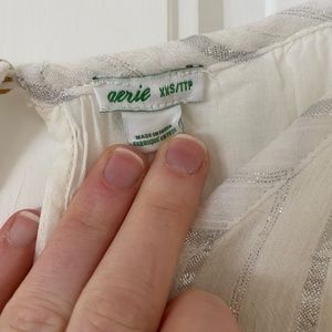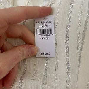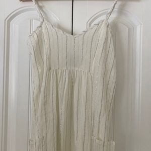 BNWT white Aerie maxi dress. This dress has never been worn. Lots of cute details - sparkly silver stripes and pockets. This dress is a size xxs and fits oversized. I usually wear an xs and this fits great. Length is 42” from the v-neck to the bottom hem.
