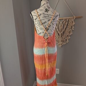 Aerie Multicolor Tie-Dye Maxi Dress Tie Back Swim Cover Beach Medium