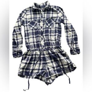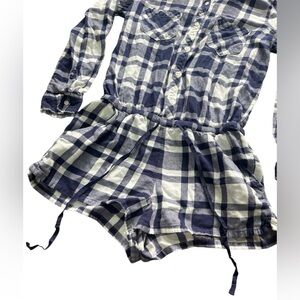 Stylish plaid romper with navy and white design. Features button-up front and long sleeves. Two front pockets. Perfect for casual wear. In excellent condition Measurements laid flat (inches) 19.5 pit to pit 32 length CV-D