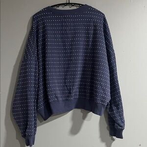 Cozy navy sweater with white polka dot. Ideal for everyday comfort. Size medium, 69 cm pit to pit, 56 cm length