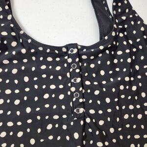 Aerie One Piece Cheeky Low Back Henley Swimsuit Black Polka Dot XXL Swim Beach