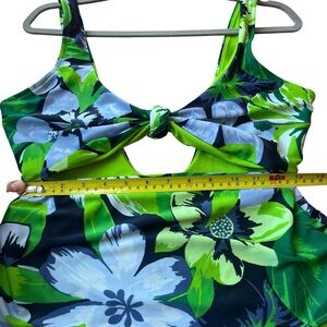 Aerie swimsuit, tropical floral swimwear, one piece bathing suit, green blue swimsuit, knot front swim, recycled polyester swimwear, summer vacation outfit, pool beachwear