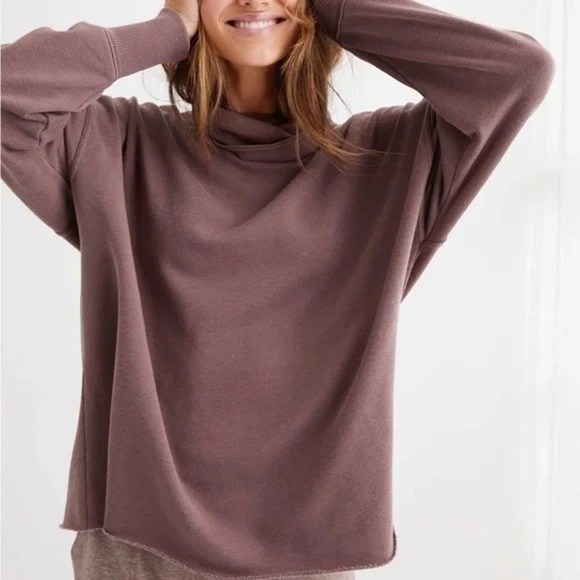 Aerie - Oversized Baggy Long Sleeve Turtleneck Cozy Mauve Cowl Neck Sweater