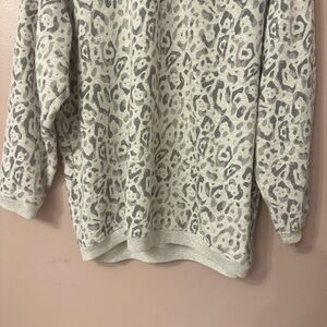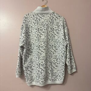 Aerie Oversized Leopard Print Quarter Zip Sweater Light Gray Women Size M
