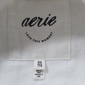 Aerie Oversized Shirt Women XXL Ivory LS Buttons Pockets Cotton Slouchy Top Boho