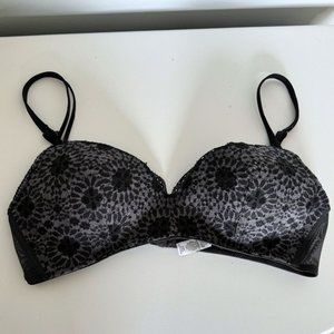 Aerie Real Happy Wireless Push Up Bra | Charcoal and Black Lace | 36B