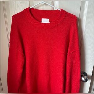 Bright red crew neck sweater. Soft and cozy. Perfect for layering.