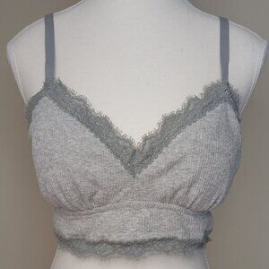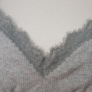 Aerie Rib Eyelash Lace Trim Longline Bralette Gray Size Large