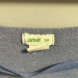 Aerie Romper Size Small Blue Has Pockets Drawstring Waistband Long Sleeve Shorts 80% Cotton 15% Polyester 5% Elastane