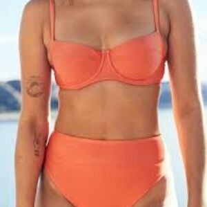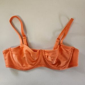 Aerie Shine Ribbed Orange Underwire Bikini Swim Swimsuit Top Size 36C New Beach