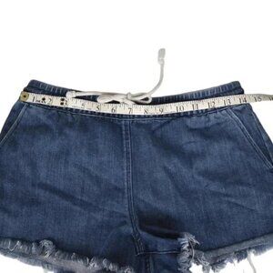 Aerie Chambray Blue High Rise Raw Hem Drawstring Pull On Shorts