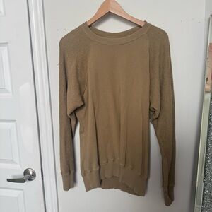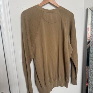 Experience the perfect blend of style and comfort with this Aerie crewneck sweater in a warm tan hue. Featuring a classic ribbed trim at the neckline and cuffs, this sweater offers a relaxed fit ideal for casual wear or layering. Its soft, lightweight knit material ensures a cozy feel for any occasion.