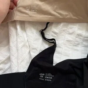 Good gently used condition, worn a few times, not the right size for me. Always hung to dry, no rips or holes, slight pilling around the underwire from wear. Size 32B, comes as a set with one black and one tan/sand skin shade/colour. Bought from aerie for $40 each.