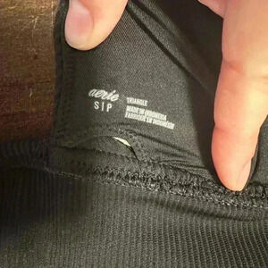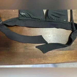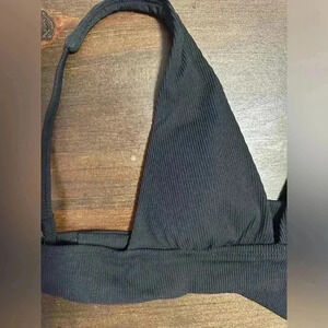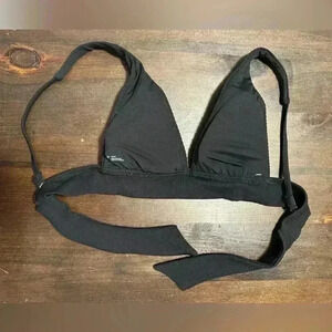Aerie Swim Black Ribbed Triangle Tie Back Padded Bikini Top Size Small Women’s
