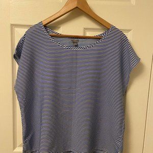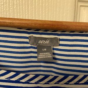 Aerie White & Blue Striped Short Sleeve Top - Size: L