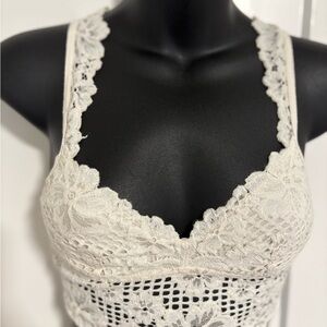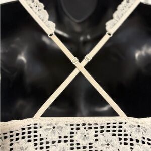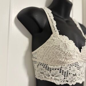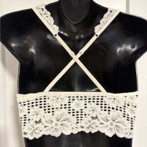 This elegant lace bralette offers a delicate and comfortable fit. Perfect for layering or wearing on its own, it features intricate lace detailing in a classic white color.