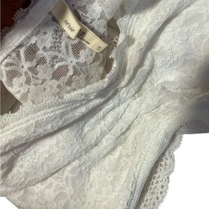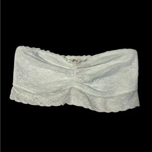 White lace strapless bra. Size large. Soft fabric. Delicate lace trim.