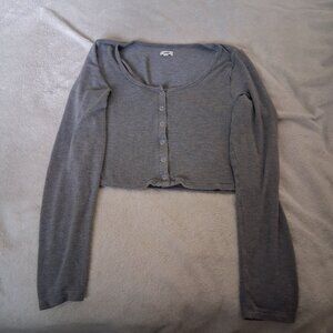 Get ready to lounge in style with this super soft and stretchy Aerie Let's Bounce Cardigan. This slinky gray cardigan features a cropped fit, long sleeves and a button-up front. It's the perfect cozy layering piece.