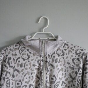 Aerie Women's Sz S Cream Animal Print Oversized 1/4 Zip Relaxed Pullover Sweater