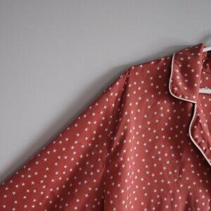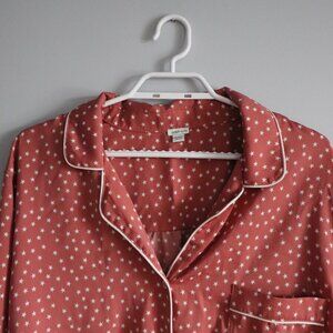 Aerie Women's Sz XXL Pink Buttoned Satin Stars Collared V-Neck Pajama Sleepwear