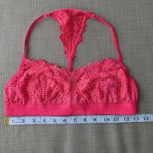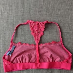 Experience all-day comfort and feel confidently beautiful in the Aerie Bright Pink Lace Racerback Bralette.