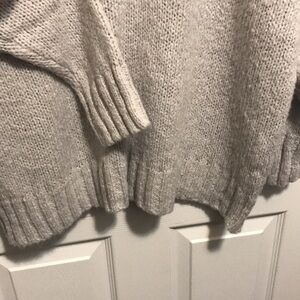 This extra soft Aerie knit sweater is the perfect cozy addition to your wardrobe! Although it’s labeled as size XS, it features an extremely oversized fit with a pit-to-pit measurement of 25 inches, offering a relaxed silhouette. The color is a lovely pale blue that leans towards grey, though the lighting in the photos may vary. Ideal for layering or wearing on its own, this sweater combines comfort and style effortlessly!