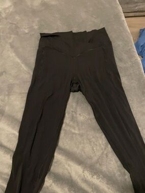 Comfortable Aerie leggings in gray and black. Ideal for active wear.