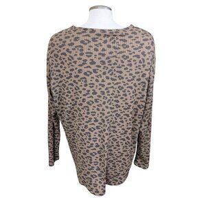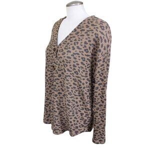 Aero Knit Cardigan Sweater Womens L Brown Leopard Print Ribbed Knit Button Up