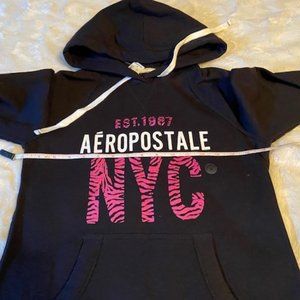 Aeropostale hoodie black with pink/white logo - size small. Brand new with tags. 60% cotton, 40% polyester. Machine wash gentle cycle. All measurements are approximate. All measurements are approximate and may slightly vary. Measurements are taken by hand with item laying flat and unstretched. All items are from my smoke free home.