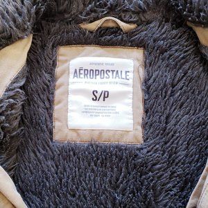 Aeropostale Faux Fur Lined Heavy Canvas Work Jacket Coat - Camel/Beige - Size: Small