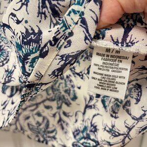 Aeropostale Floral Boho Tie Blouse Cream Navy - M