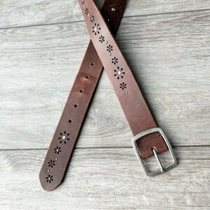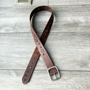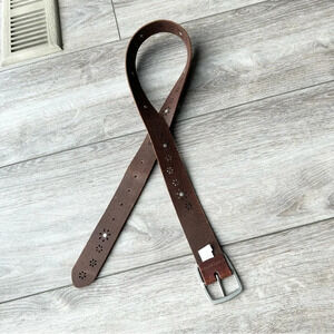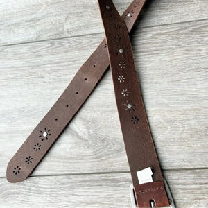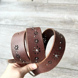 Aeropostale Genuine Leather Rhinestones Floral Laser Cut Belt