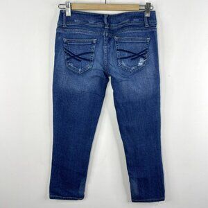 Aeropostale Jeans Womens Size 1/2 28x23 Low Rise Capri Crop Distressed Blue