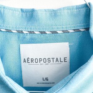 Aeropostale Mens Shirt Button Down Casual Cotton Long Sleeve Blue Large