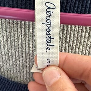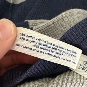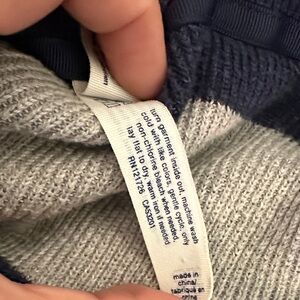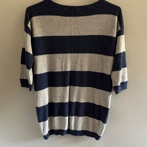 Chic striped sweater with navy and gray tones. Ideal for casual wear.