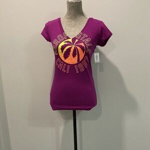 We're going back to basics! Replenish your closet with your essential pieces, starting with our Basic V-Neck T-shirt. This Aeropostale Purple Cali 1987 T-shirt features a relaxed fit, short sleeves and a v-neckline. Wear it with a pair of jeans or joggers.
