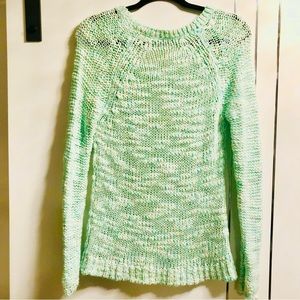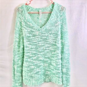 Aeropostale Size Medium Mint Green White Knit V-Neck Sweater