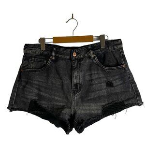 Aeropostale Women's High Waisted Black Distressed Mom Shorts Sz 12