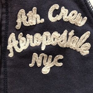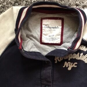 Aeropostale varsity jacket size XS. Well loved - it’s faded, but no rips or stains. Cozy for fall. Cute elbow patch tone on tone accent. Grey jersey lining.