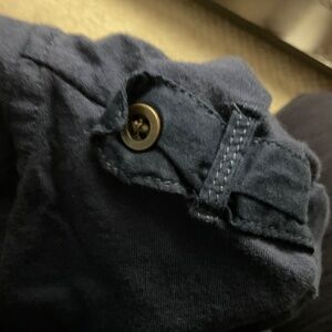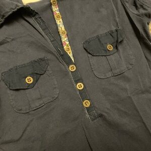 Button trim is flowery with metal buttons. Top of sleeve has button as well (see photo).