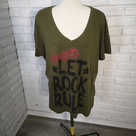 Aerosmith "Let It Rock" Army Green Ladies Size 3X V-neck Short Sleeves T-shirt