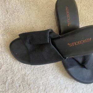 Aerosole slides, hardly worn. Black comfortable slides, stretchy fabric over top of foot wedgies size 9.5
