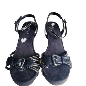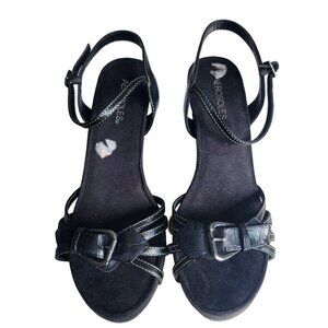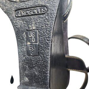 Aerosoles Black Strappy Platform Wedge Sandals Buckle Detail Adjustable Size 10